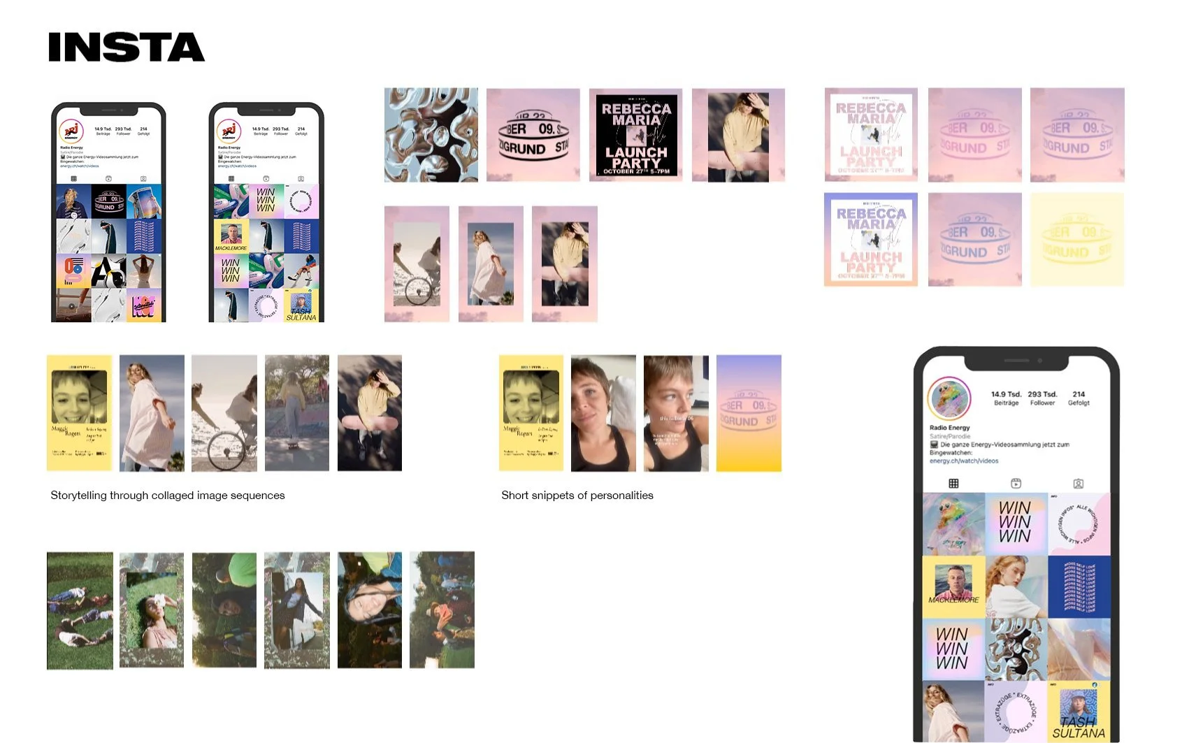 Explorative studies developed to test visual tone, content rhythm, and brand expression across digital formats. Each direction reflects a different emotional and stylistic approach.